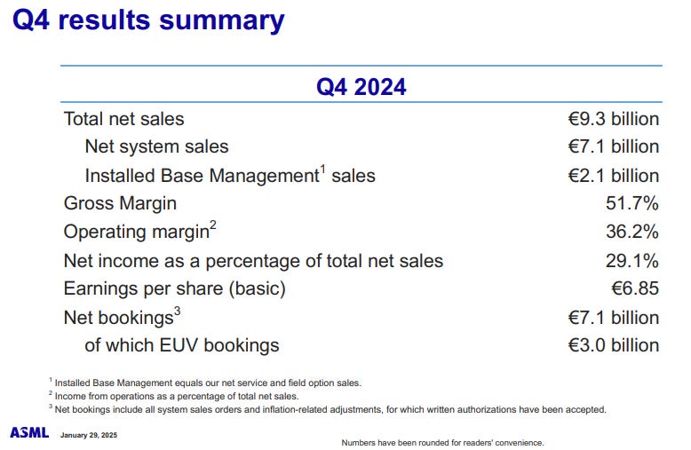 This week, I’m continuing my earnings reviews with ASML’s Q4 2024 earnings report, management video conference and press conference released this morning. (Access to the whole package shared by ASML 👉 here)