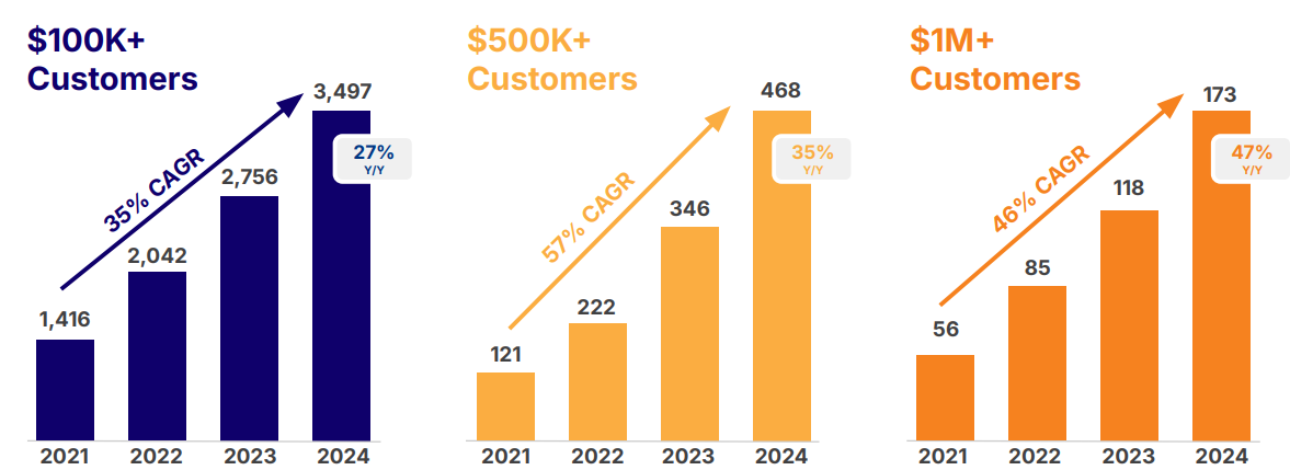 Large Customers ($100K+ ARR): Reached 3497, up 27% YoY.