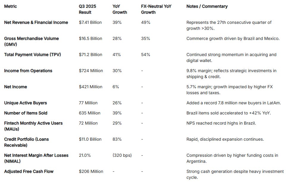 MELI is generating 39% revenue growth at a $16.5 billion quarterly revenue run rate. They’re adding 7.8 million new buyers to the platform (+26% YoY), users who will generate value across the entire ecosystem for years. The temporary margin compression is the price of securing long-term market dominance in a market where e-commerce penetration is still in the mid-teens.