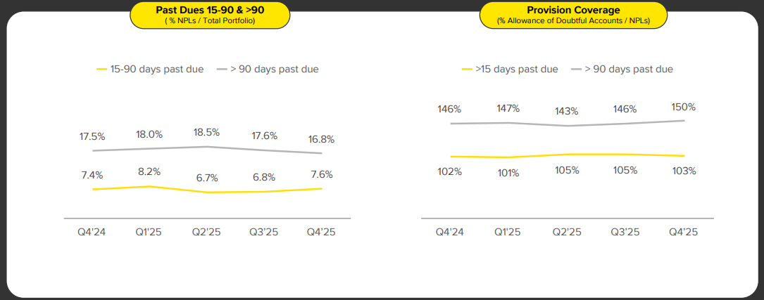 But, as Fintech President Giménez explained, they’re deliberately expanding down the credit curve and pricing that risk accordingly. The wider spread (NIMAL) is the reward for taking that risk. This is textbook subprime lending done correctly: price for the risk, accept higher delinquencies, and make sure your net return is attractive.