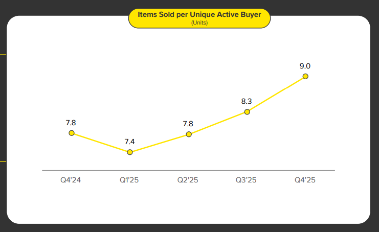 The decision to lower Brazil’s free shipping threshold from R$79 to R$19 has been a key driver of growth. Items sold in Brazil accelerated from 26% growth in Q2 to 45% in Q4.